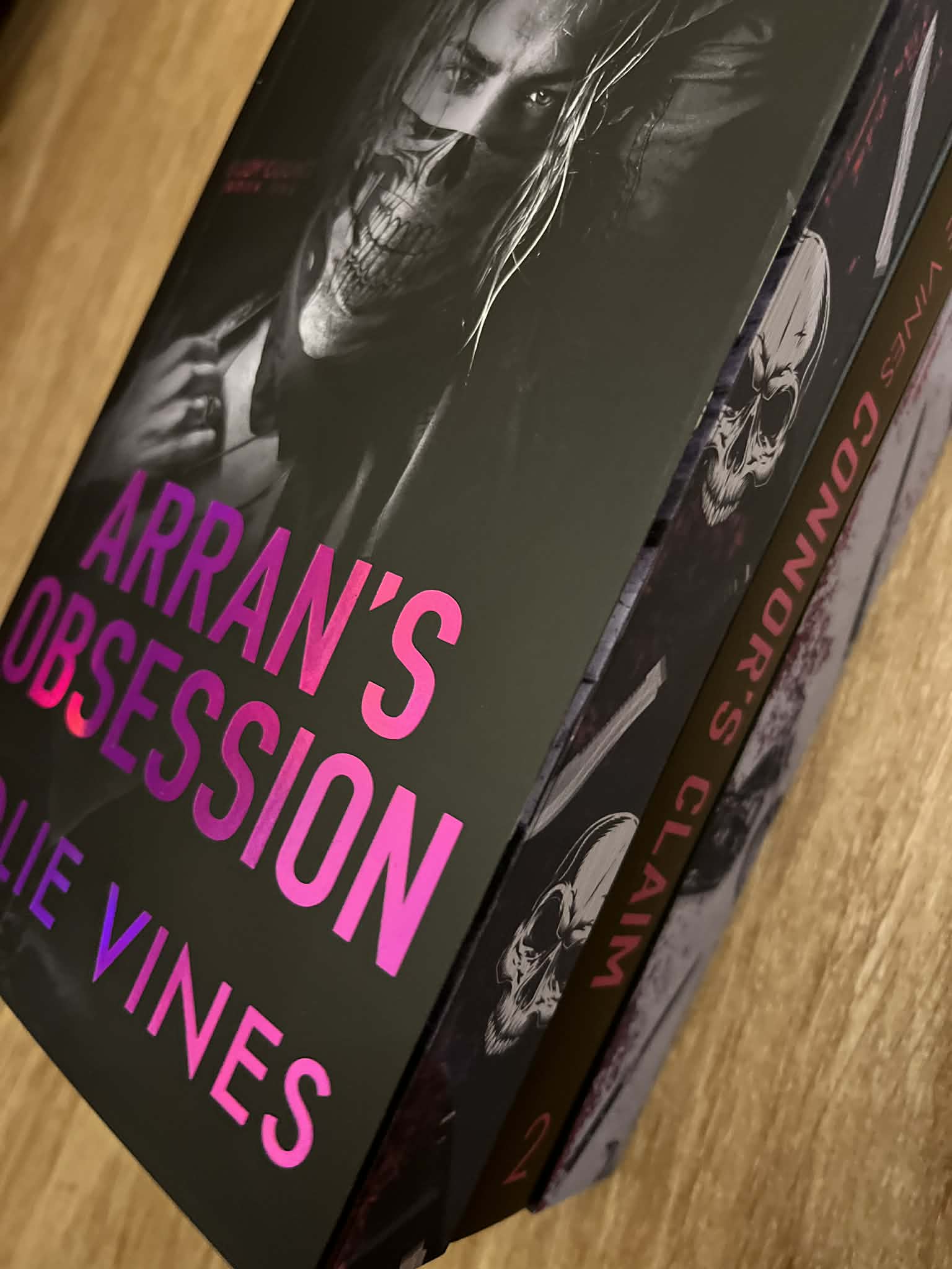 - sprayed edges with motifs that fit the dark romance vibe perfectly